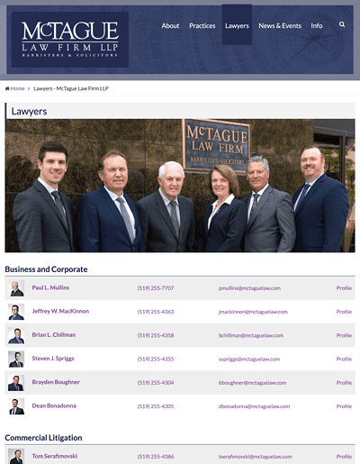 The employee listing and profiles page templates are print friendly and easily understood with minimum clutter. The newsletter sign-up page is integrated with Mailchimp—leveraging their grouping feature for easy list management.