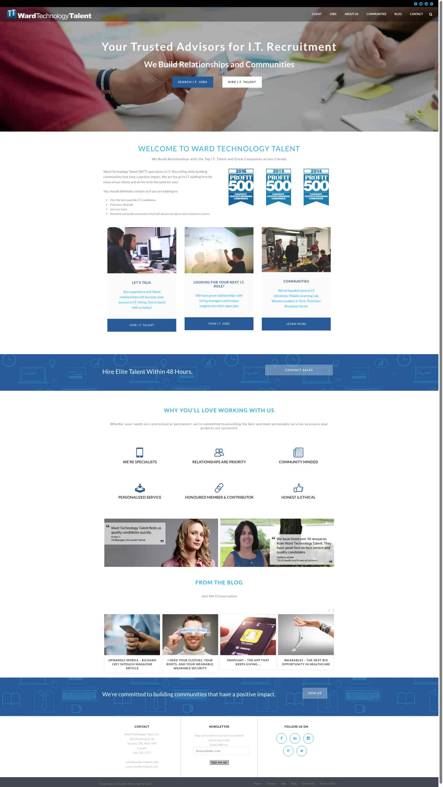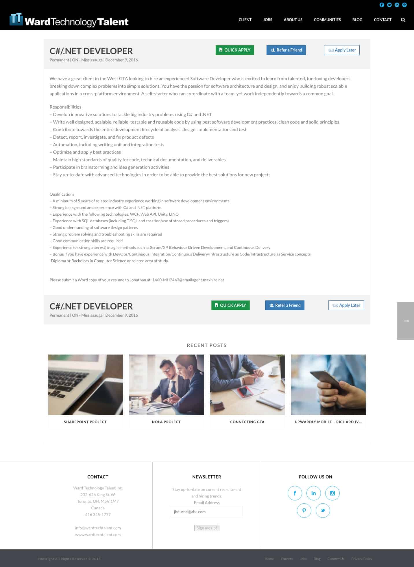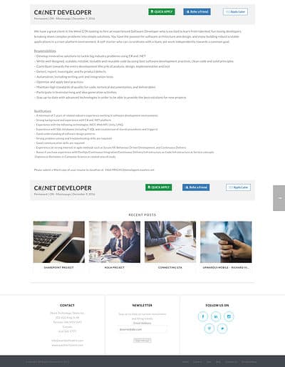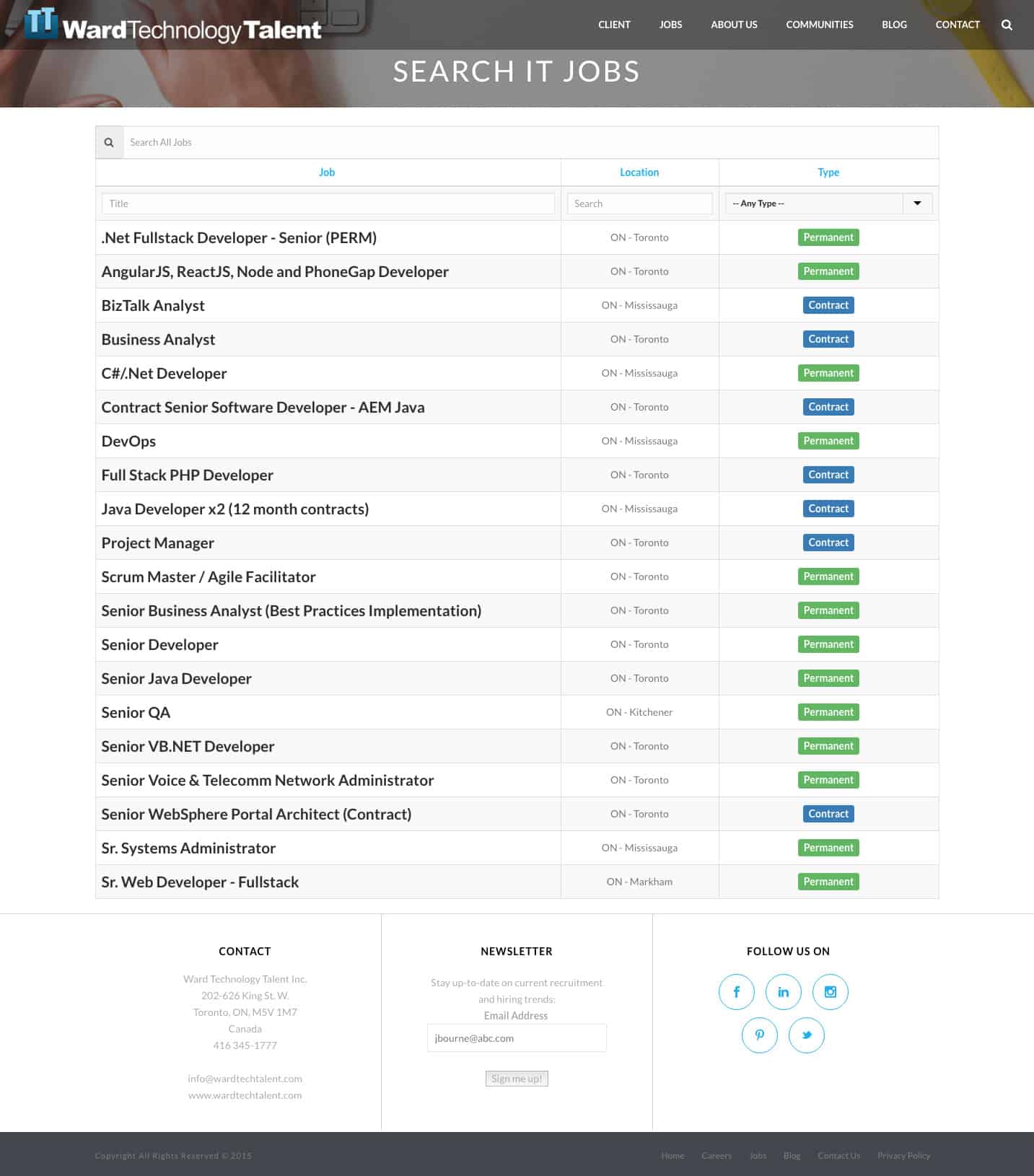 A customized WordPress theme with an integrated custom job board using AngularJS. Candidates are able to quickly search and upload their resume to apply for jobs.